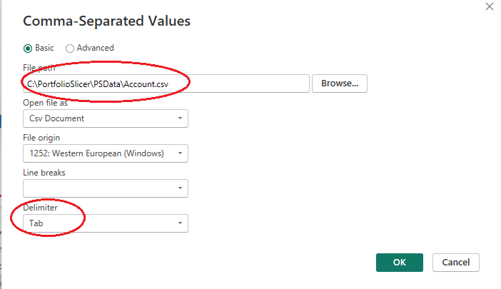 The Portfolio Slicer Power BI file contains tables that are loaded from the files for Portfolio Slicer reports