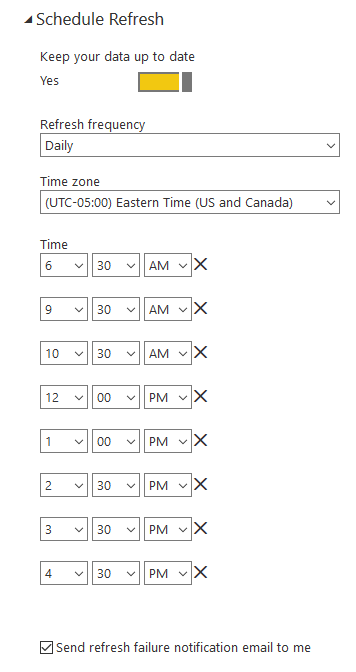 Scheduled refresh allows your published Portfolio Slicer reports in the Power BI service to stay up to date without requiring a manual refresh each time.